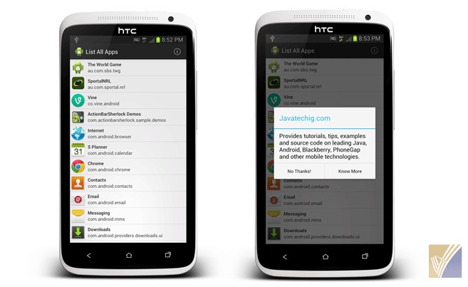 This is the main application class that is used to initialize and list the installed applications. As getting the list of application details from PackageManage is a long running task, we will do that in AsyncTask. Also, this class is using custom Adapter “ApplicationAdapter” for custom ListView.