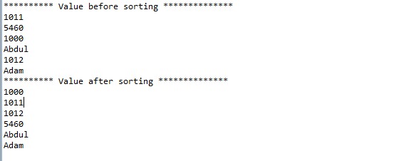 System.out.println("**** Value before sorting ***");